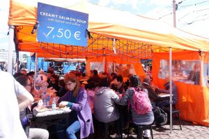 Soon, we encountered some of the famous Finnish street food, such as the creamy salmon soup, and stir fried sea-food along the coastline. We soon found a place to sit down and enjoy our snacks, where we ordered a myriad of fried seafood and salmon soup.