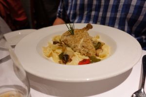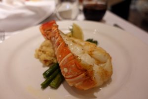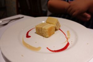 Finally, it was time for dinner, and we were quickly again directed to our seats, and served bread and our choice of appetisers. For appetisers, we got 2 servings of the Marinated Tiger Shrimp, and 2 servings of Baked Oysters on the Half Shell. For our main course, ZA wasn’t sure what to get as he thought the Lobster Tail would be small, and would not be very filling as a dinner meal. So he asked our server, Jose if it was small. Instead of answering, he said that he could bring two(!) tails for ZA instead. This again was another example of prime Disney service. The rest of us had the Fettuccine with Parmesan-Crusted Chicken, while Ashley had a plain Fettuccine with cheese.