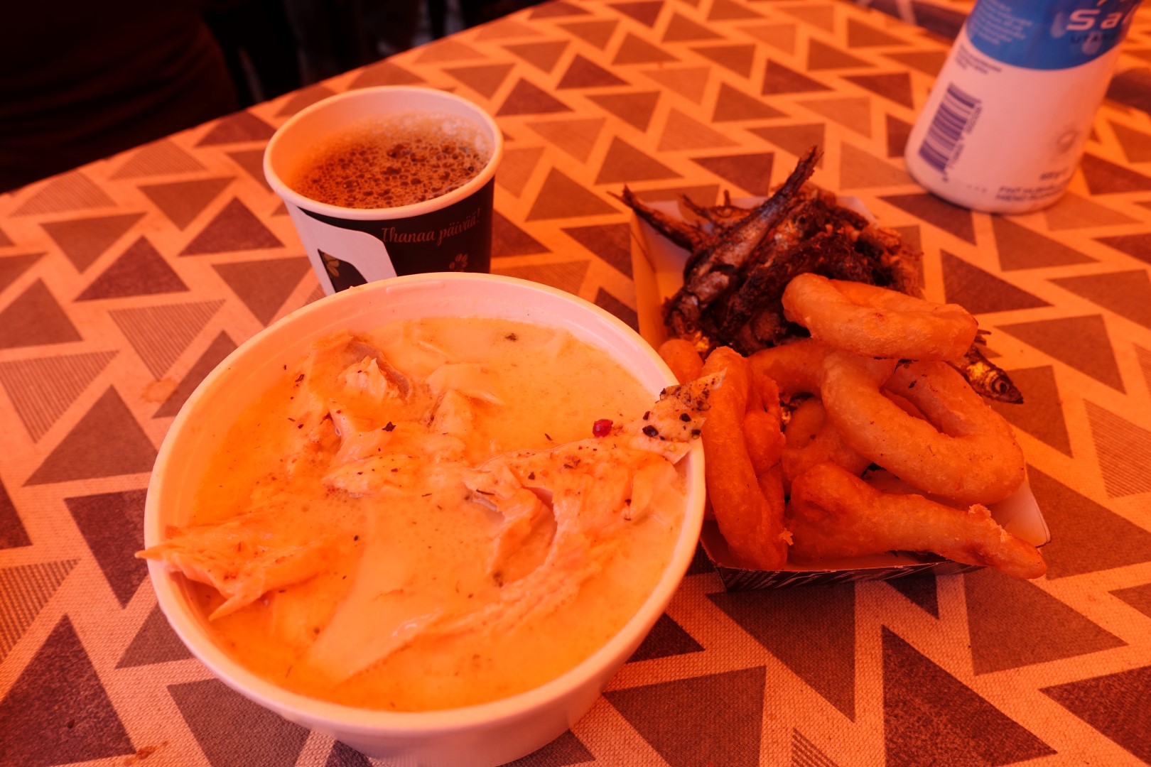 Soon, we encountered some of the famous Finnish street food, such as the creamy salmon soup, and stir fried sea-food along the coastline. We soon found a place to sit down and enjoy our snacks, where we ordered a myriad of fried seafood and salmon soup.
