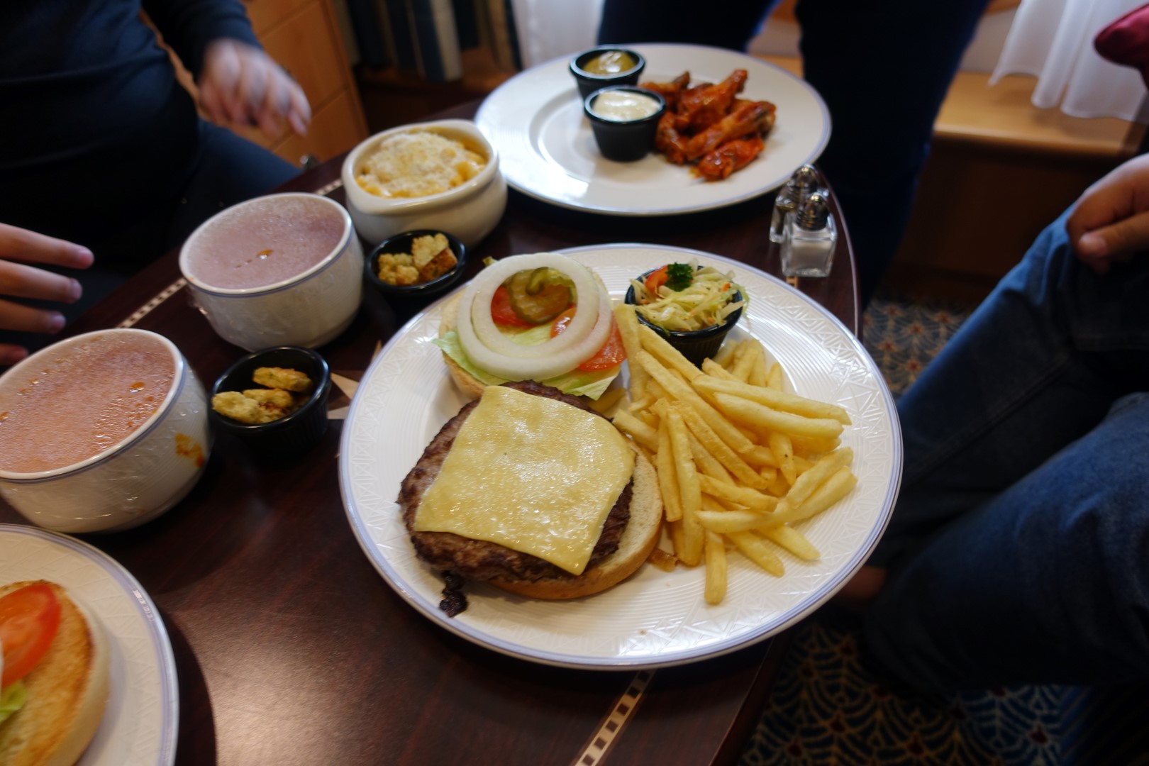 Afterwards, we decided that it wouldn’t be a bad idea to get some snacks from around the ship, complementing our lunch with some nice comfort food in cakes from Cove cafe, burgers from around the pool, as well as Buffalo wings!