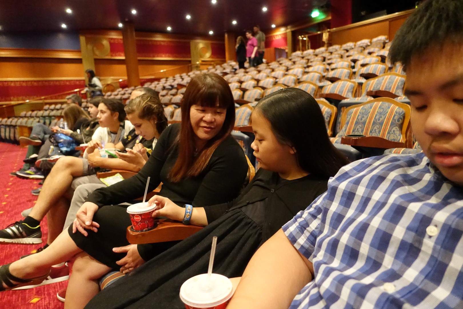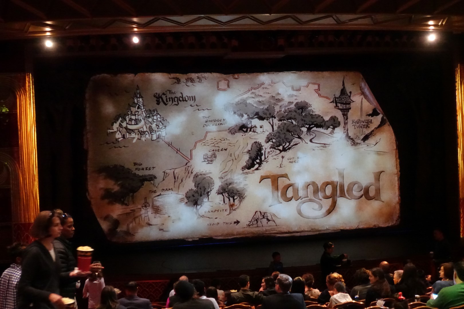 After our second round of lunch, we headed to the theater for the early show. This time we arrived super early at the theater because it would be airing a new show, Tangled.