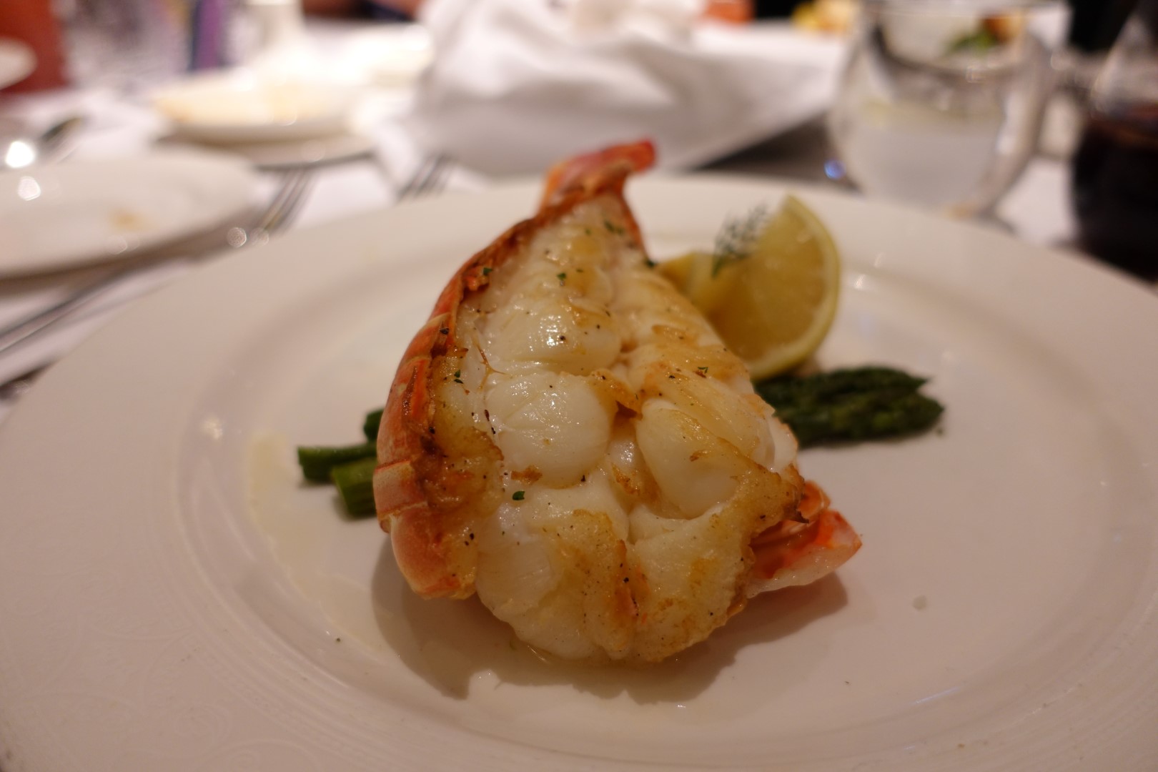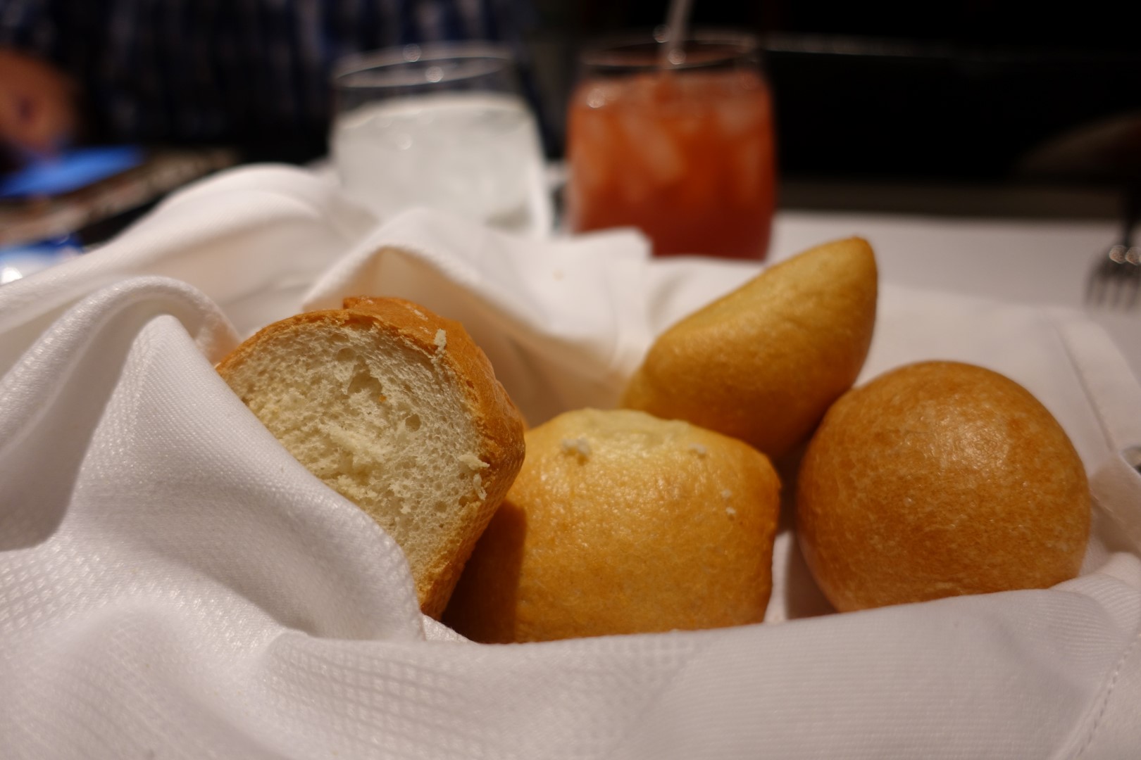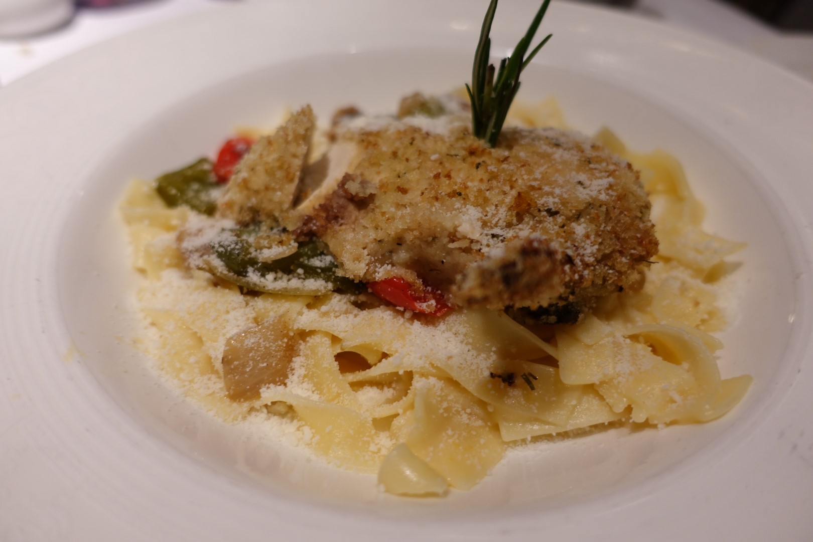 Finally, it was time for dinner, and we were quickly again directed to our seats, and served bread and our choice of appetisers. For appetisers, we got 2 servings of the Marinated Tiger Shrimp, and 2 servings of Baked Oysters on the Half Shell. For our main course, ZA wasn’t sure what to get as he thought the Lobster Tail would be small, and would not be very filling as a dinner meal. So he asked our server, Jose if it was small. Instead of answering, he said that he could bring two(!) tails for ZA instead. This again was another example of prime Disney service. The rest of us had the Fettuccine with Parmesan-Crusted Chicken, while Ashley had a plain Fettuccine with cheese.