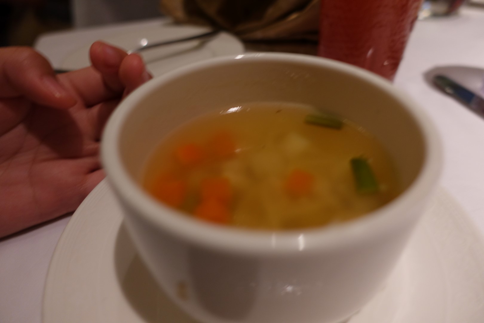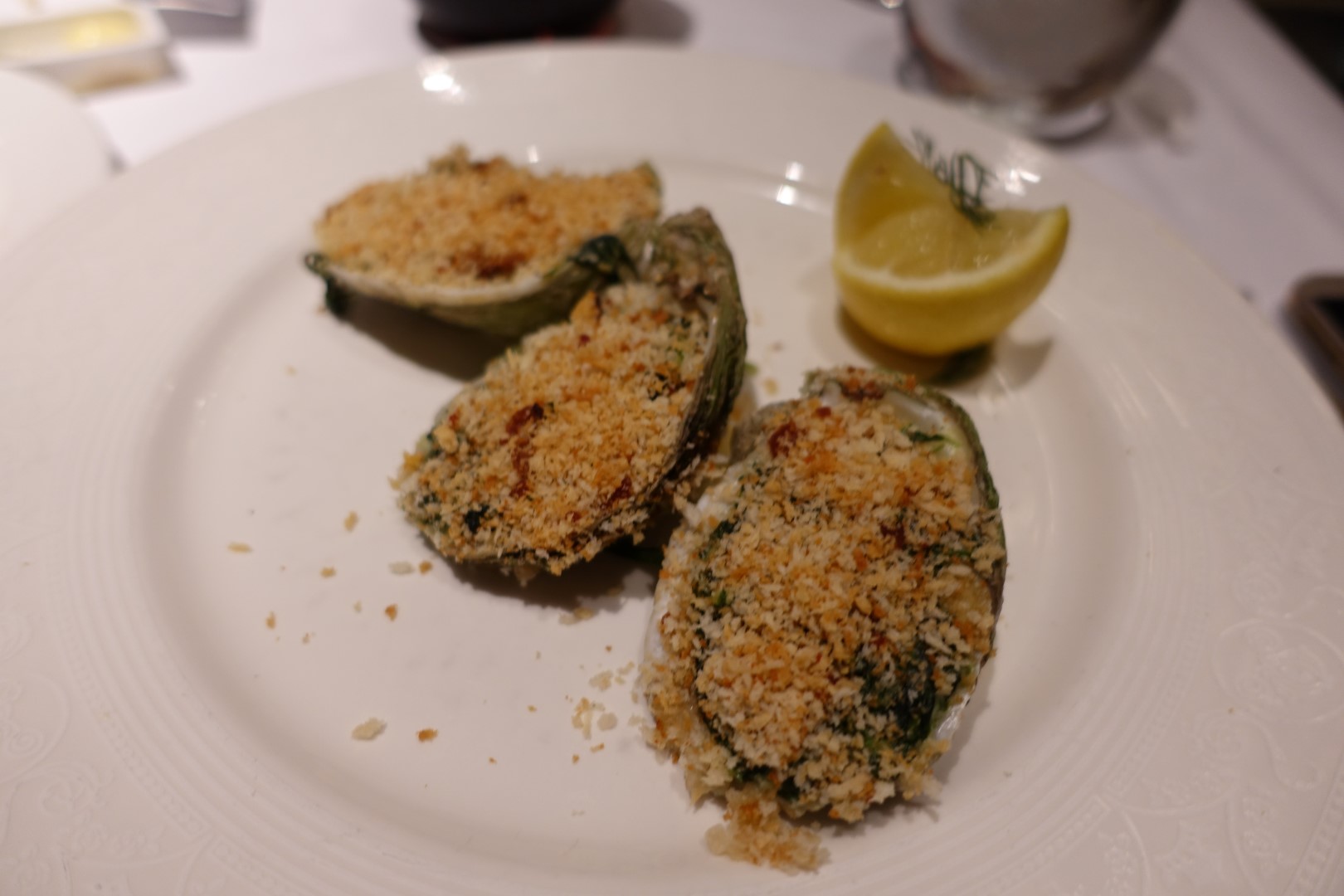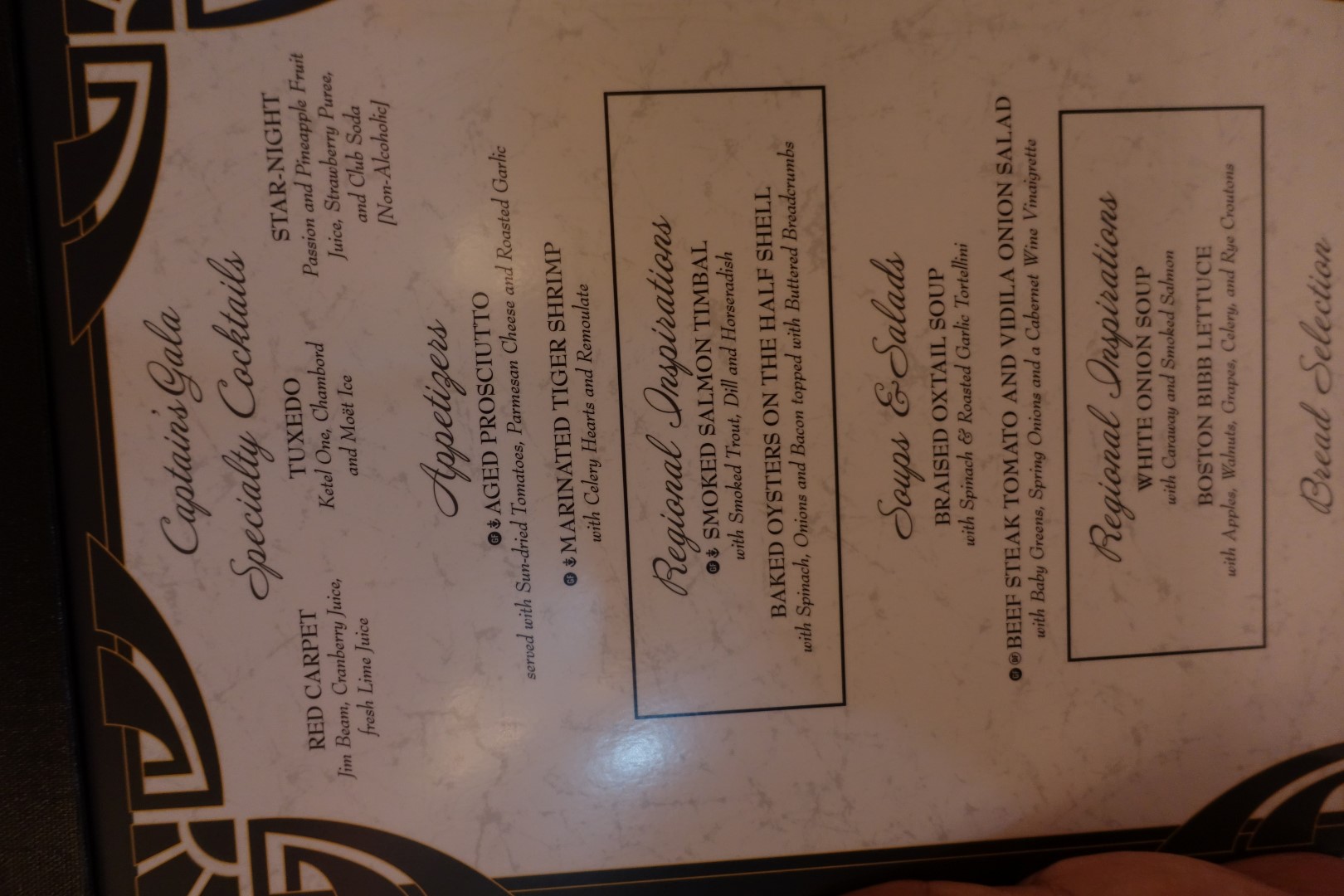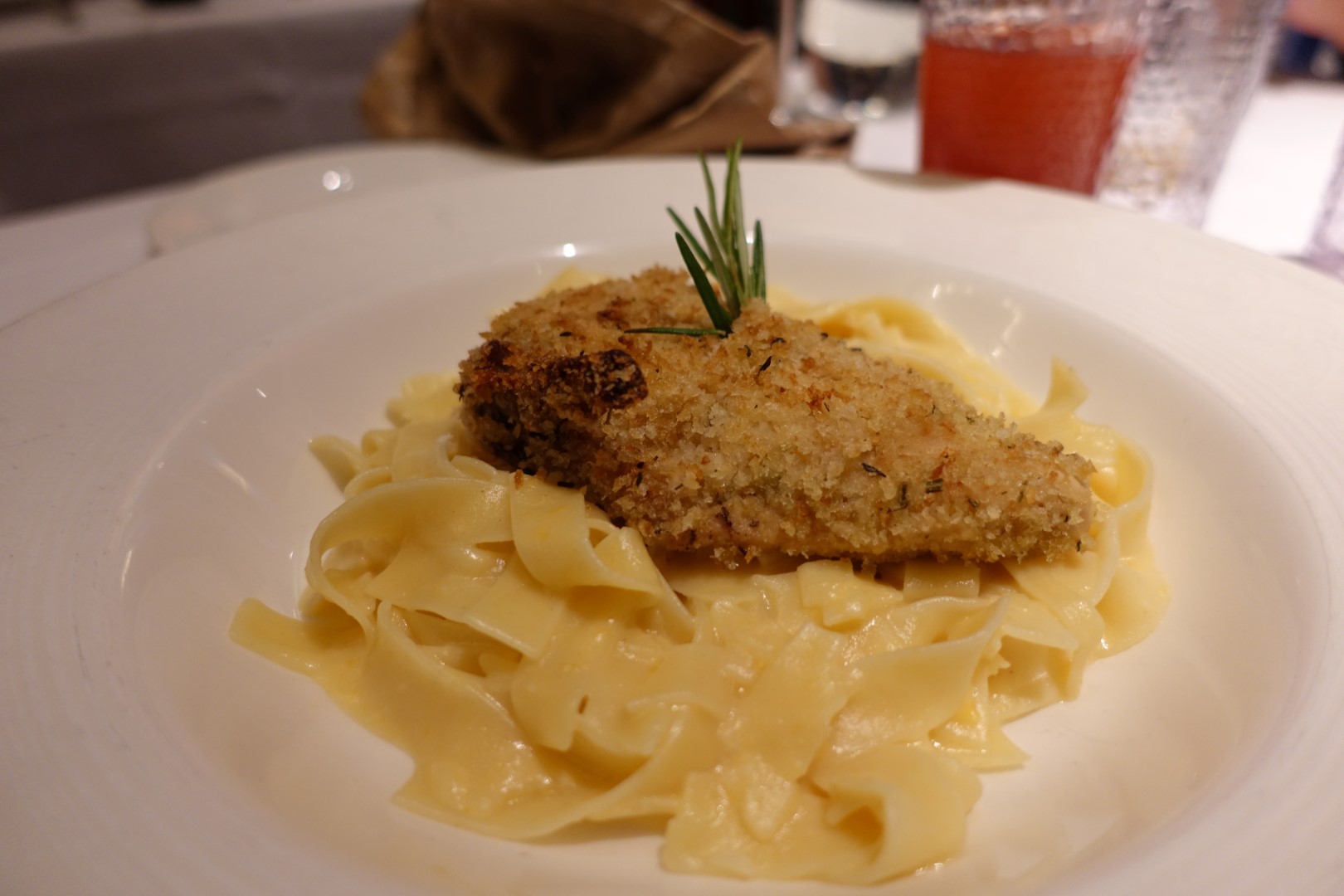 Finally, it was time for dinner, and we were quickly again directed to our seats, and served bread and our choice of appetisers. For appetisers, we got 2 servings of the Marinated Tiger Shrimp, and 2 servings of Baked Oysters on the Half Shell. For our main course, ZA wasn’t sure what to get as he thought the Lobster Tail would be small, and would not be very filling as a dinner meal. So he asked our server, Jose if it was small. Instead of answering, he said that he could bring two(!) tails for ZA instead. This again was another example of prime Disney service. The rest of us had the Fettuccine with Parmesan-Crusted Chicken, while Ashley had a plain Fettuccine with cheese.
