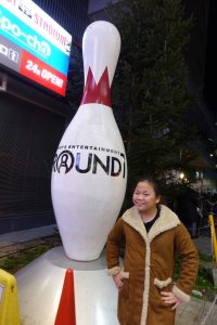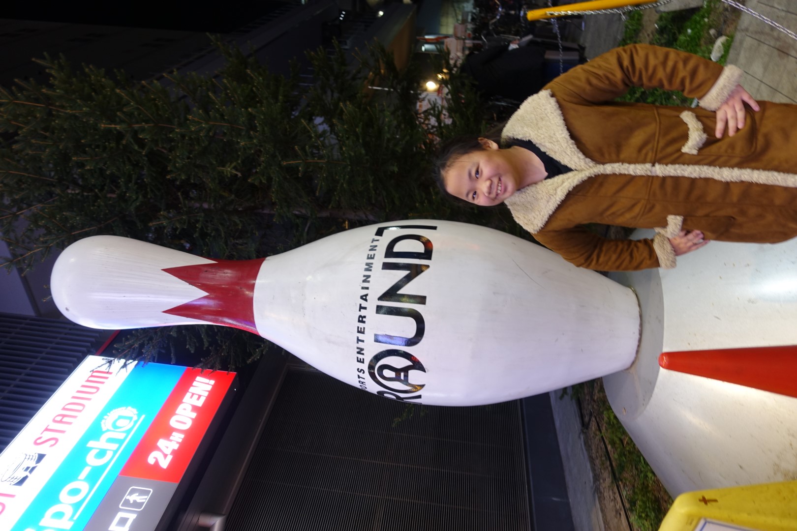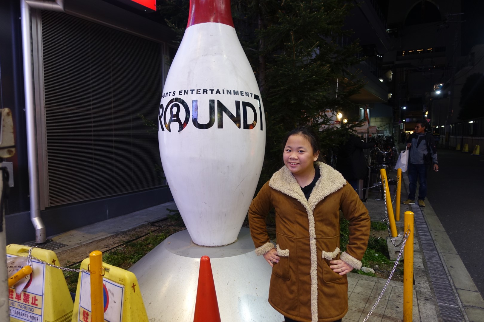 Before heading back to the hotel, we stopped by Round 1 Entertainment centre, which was marked with a huge bowling pin, unfortunately it did not sell any interesting bowling supplies, instead focusing on fun bowling. However it was certainly a picture to remember, standing next to such a huge bowling pin.