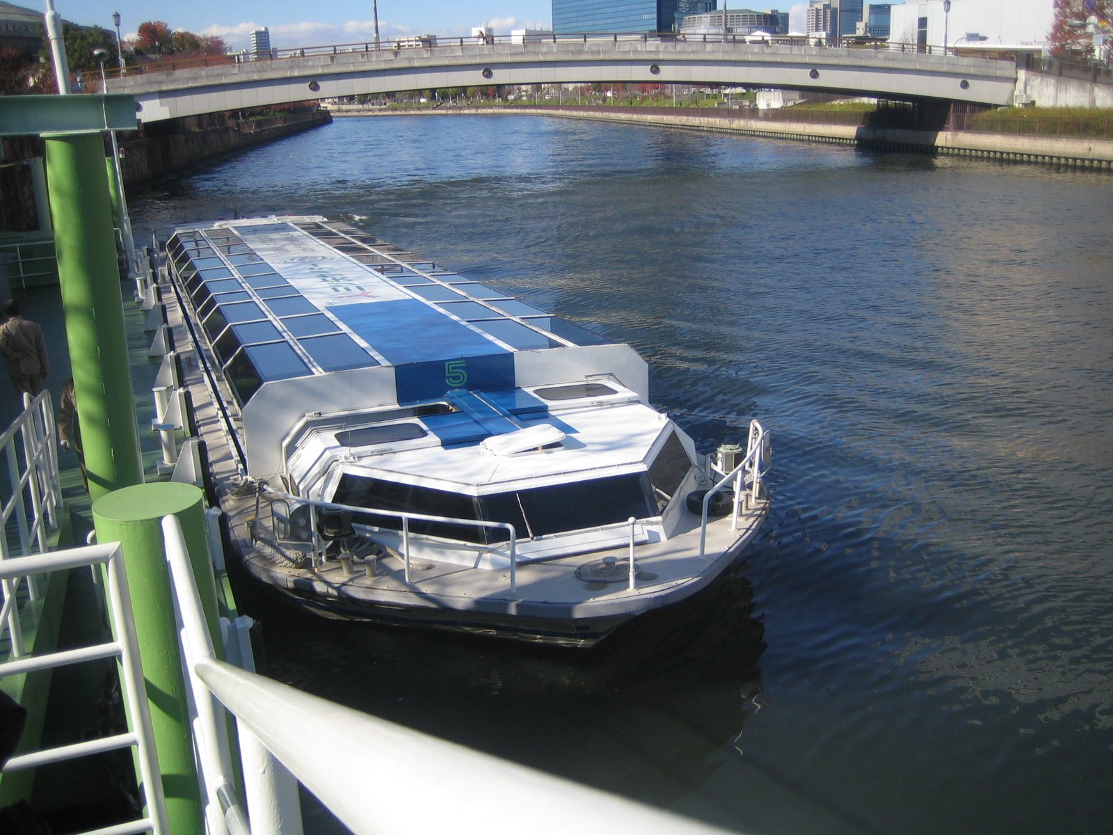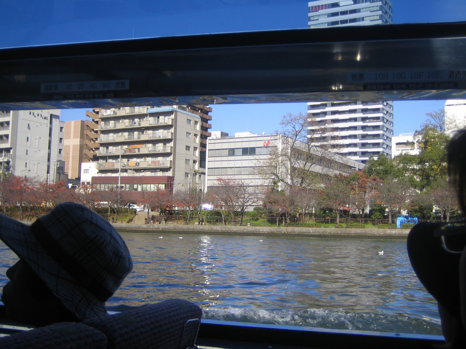 We hopped aboard The Aqua Bus Aqua Liner with designated seats. This is a 60 minute tour on a water bus which took us along Okawa River from the urban area at Osaka Castle to Nakanoshima. Along the way, we saw several historic buildings and cherry trees although it was not cherry blossom season. The unique feature of this Aqua Liner is that the whole roof lowers to go under low bridges and raises again after passing them. Drinks and snacks are available on board too. This is a pleasant experience in the canal city of Osaka.