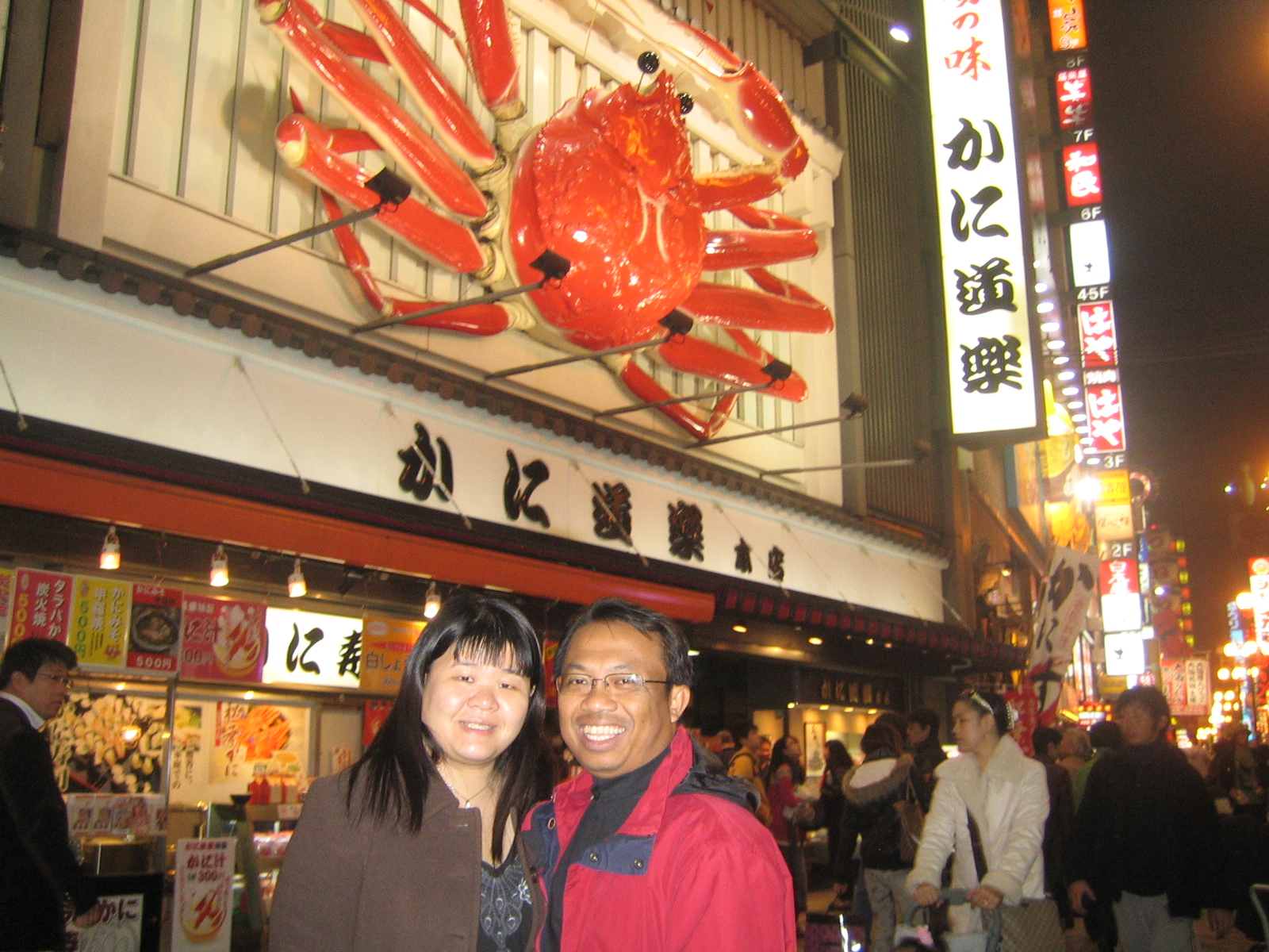 As dinner time approaches, we returned to Dotonbori. This time round, our experience is totally different. By night, Dotonbori is illuminated by hundreds of neon lights and mechanised signs including the famous Glico running man sign and the Kani Doraku crab sign. We felt like we were transported to a scene in the Japanese and foreign movies featuring Osaka.
