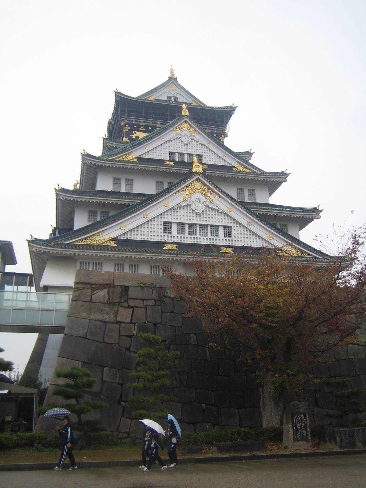 We headed towards the Osaka Castle amidst the rain. It is a long walk from the subway station. Osaka Castle was built by the hegemon Toyotomi Hideyoshi, who ruled Japan in the latter half of the 16th century, on the site of a temple called Ishiyama Hongan-ji. The construction work began in 1583 and most buildings such as the castle tower were completed in 1585. The existing castle tower was built in 1931. It has five tiers and is approximately 40 m high. The last major repair work was done in 1997 and the castle tower is now entirely modern on the inside and even features an elevator for easier accessibility. It also houses an informative museum on the castle’s history.