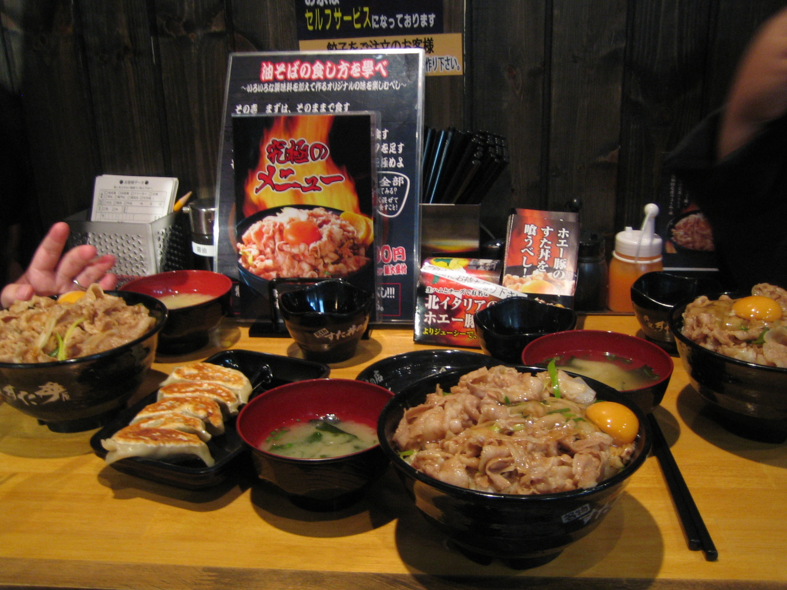 We returned to Dotonbori again in search for dinner. After walking up and down the street, we stopped at this eatery serving kurobuta over steaming hot rice, complete with raw egg. We had to order and make payment at the vending machine before being ushered to our seat. Picture speaks a thousand word, the meal was cheap, yet heavenly!