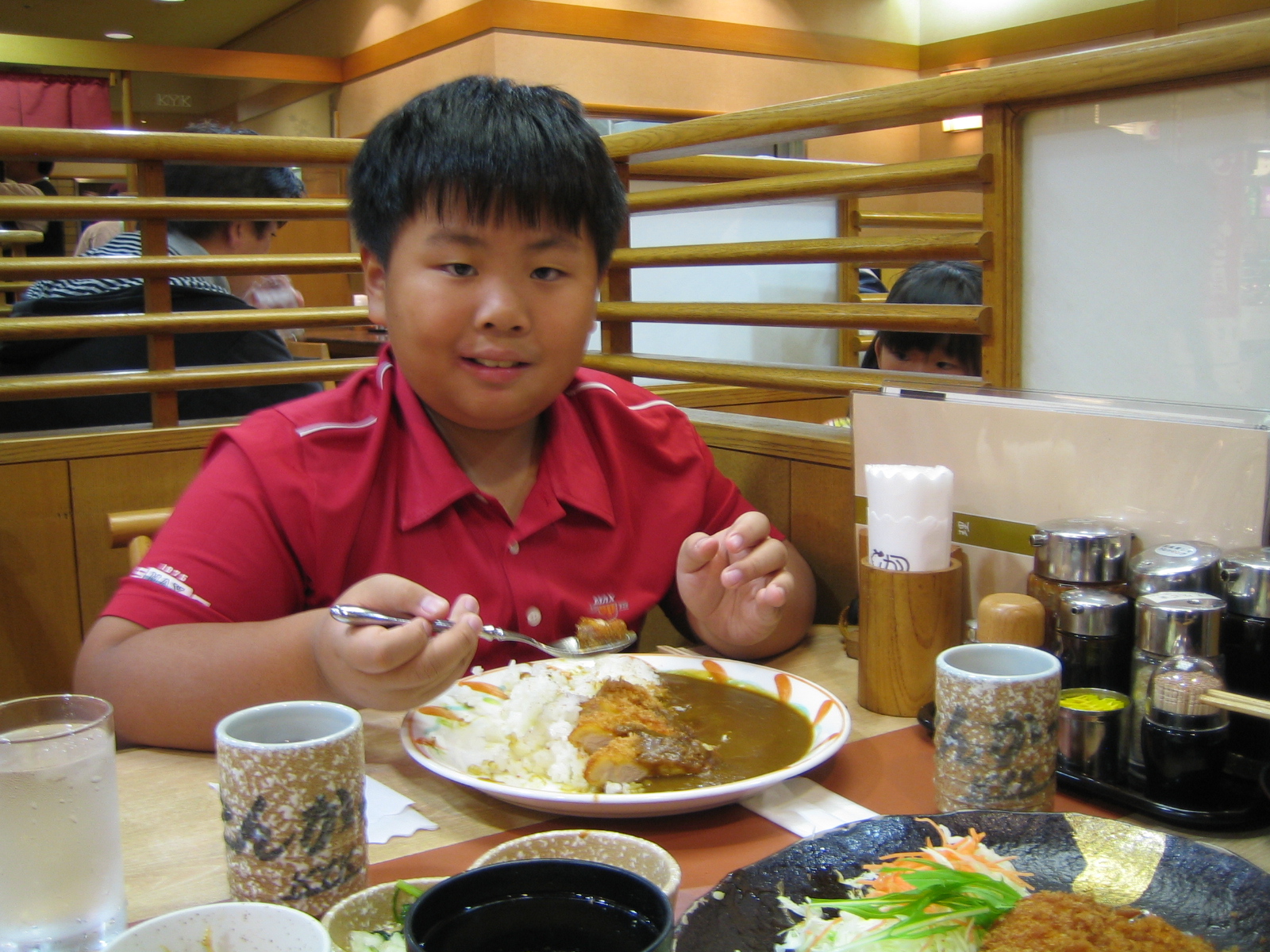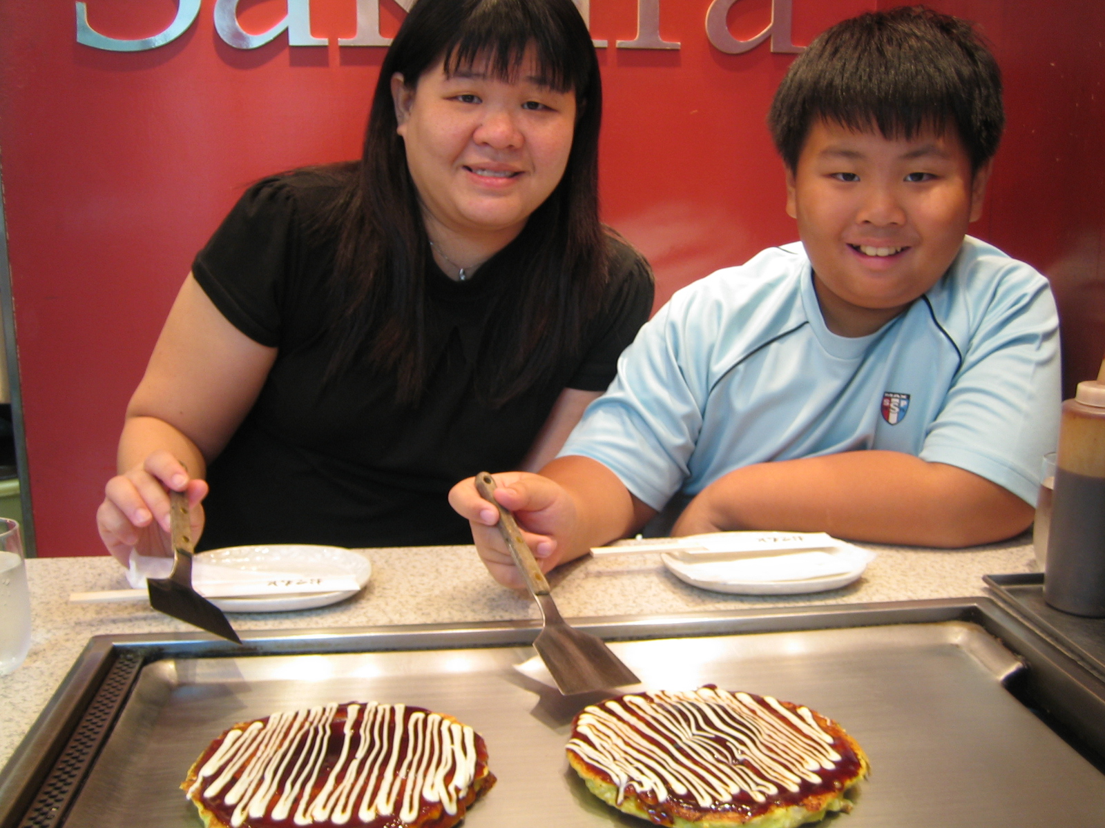 This time round, we ventured to Umeda and walked into a big maze of small restaurants. We found Okonomiyaki Sakura, and as the name suggests, they serve Okonomiyaki and also Yaki Udon. Our Okonomiyaki arrived on our hot plate and we were given metal scoopers to cut and serve. The hot plate keeps the Okonimiyaki warm. Both Jarod and I liked it but ZA is not quite a fan of Okonomiyaki.